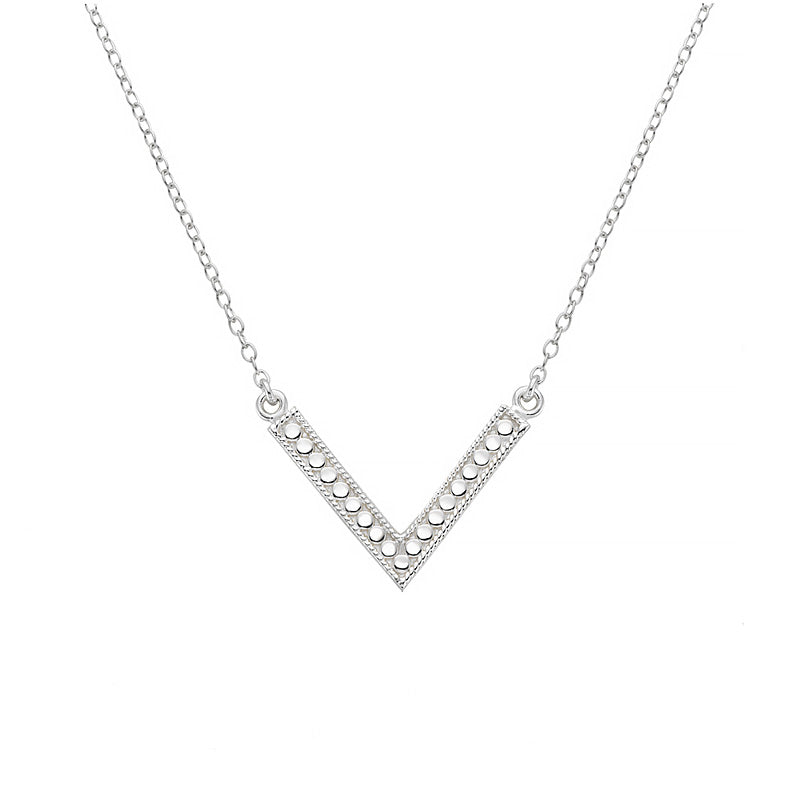 Ana Beck Sterling Silver V Necklace (Double-Sided) - Silver