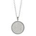 Wire-rimmed silver medallion necklace with 30" silver chain.