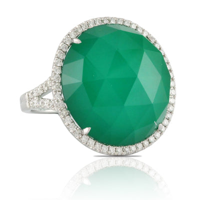 Leave your friends green with envy. Faceted, clear white topaz is layered with elegant green agate for a rich pop of emerald green color.