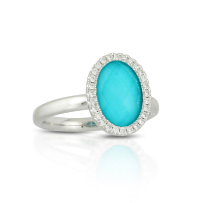 Inspired by the sparkling turquoise waters and crystal seas of the Caribbean. Natural Arizona turquoise is topped with clear white topaz.