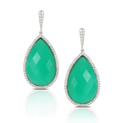 Leave your friends green with envy. Faceted, clear white topaz is layered with elegant green agate for a rich pop of emerald green color.