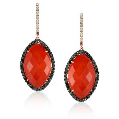 Clear white topaz is set over rich carnelian agate, combining for an unmatched burst of tangerine and ruby-red hues.