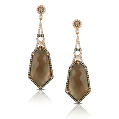 Smoky quartz is layered with shimmering white mother of pearl, for a robust shade that incorporates the warmth and richness of the Earths landscapes. Set in 18 karat rose gold.