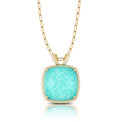 Originating in the Amazon River, this Hope Stone is known to soothe the spirit and calm the soul. Faceted, clear white topaz is layered with amazonite.