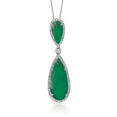 Leave your friends green with envy. Faceted, clear white topaz is layered with elegant green agate for a rich pop of emerald green color.