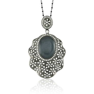 Layers of charcoal grey hematite and pure white topaz result in iridescent grey hues.