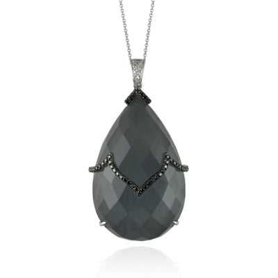 Layers of charcoal grey hematite and pure white topaz result in iridescent grey hues.