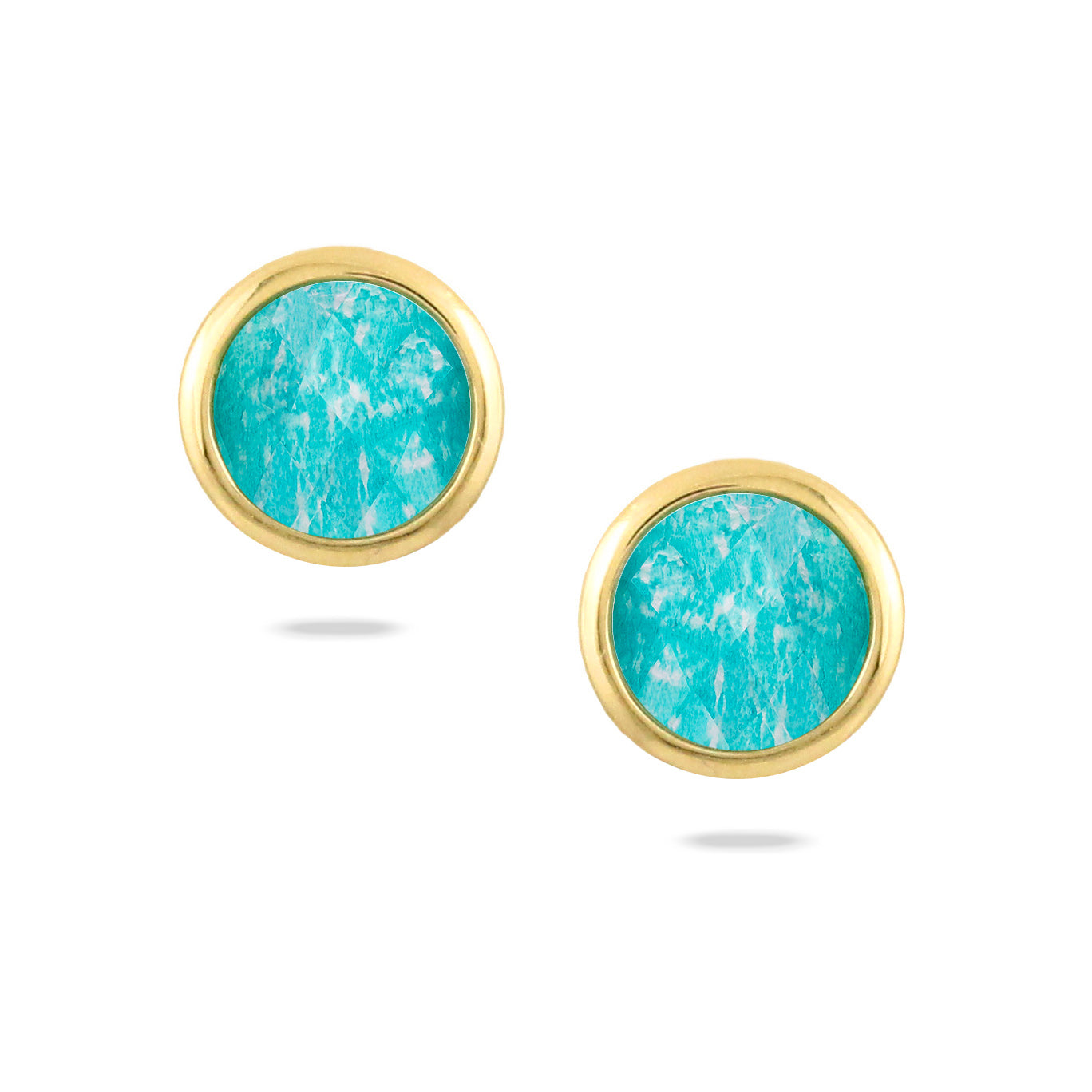 18K YELLOW GOLD EARRING WITH CLEAR QUARTZ OVER AMAZONITE