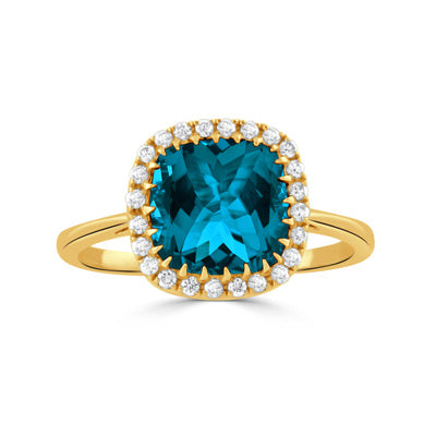 18K YELLOW GOLD DIAMOND AND LONDON BLUE TOPAZ RING