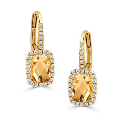 18K YELLOW GOLD DIAMOND AND GOLDEN CITRINE EARRINGS