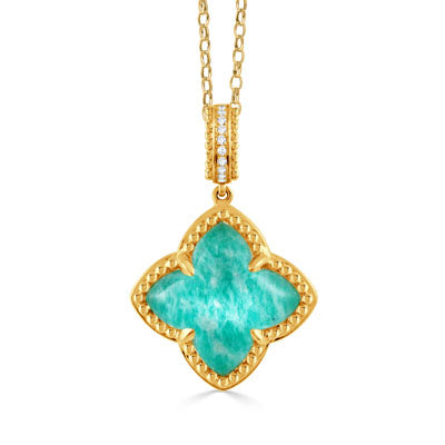 18K YELLOW GOLD DIAMOND PENDANT WITH CABUCHON CUT CLEAR QUARTZ