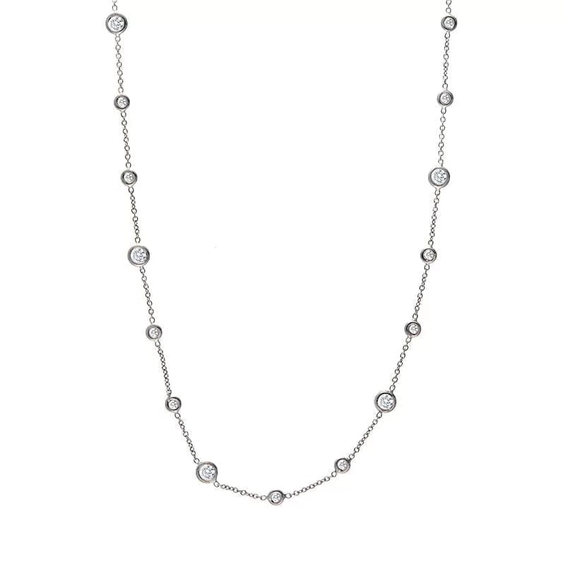 18K WHITE GOLD 50 BEZEL-SET ROUND BRILLIANT DIAMONDS ON A 34" CABLE CHAIN