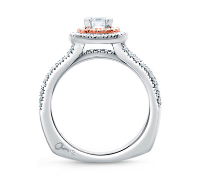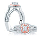 A.JAFFE ART DECO DOUBLE HALO ROSE GOLD DIAMOND CUSHION FRAME THREE ROW ENGAGEMENT RING 0.64