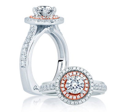 A.JAFFE ART DECO DOUBLE HALO ROSE GOLD DIAMOND PAVÉ ENGAGEMENT RING 0.53 (not including
