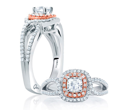 A.JAFFE ART DECO DOUBLE HALO CUSHION FRAME ROSE GOLD DIAMOND ENGAGEMENT RING 0.45 (not