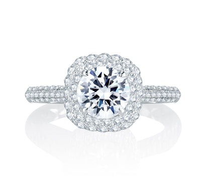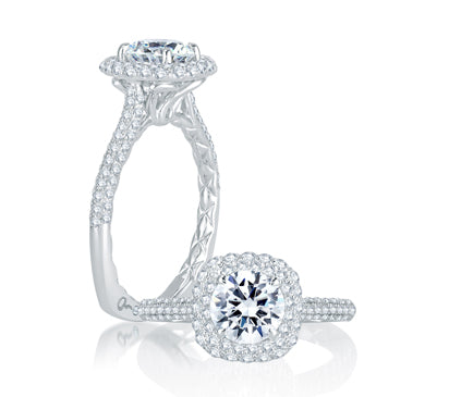 Micro Pavé Cushion Halo Center Quilted Engagement Ring
