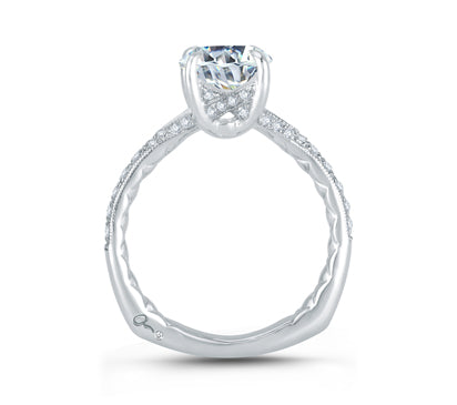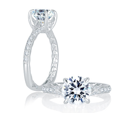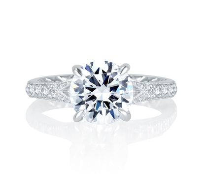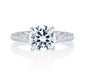 Unique Floral Split Shank Four Prong Round Diamond Quilted Engagement Ring