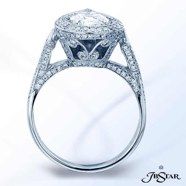 JB STAR PLATINUM DIAMOND RING FEATURING A STUNNING 1.30 CT PEAR SHAPE DIAMOND IN A MICRO PAVE SETTIN