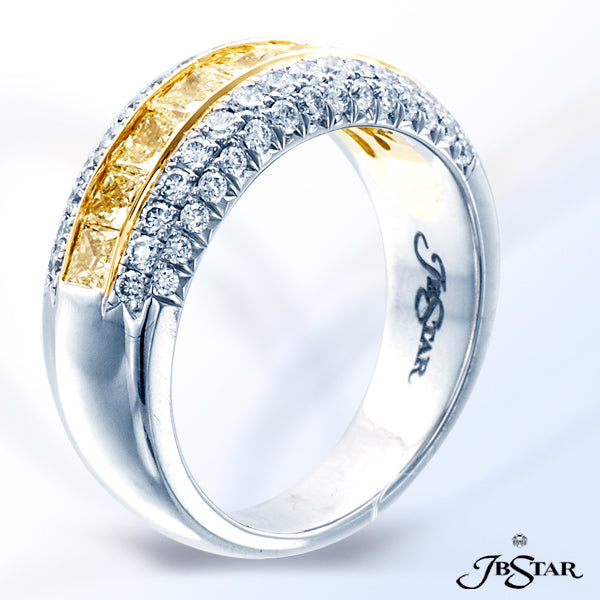 JB STAR GORGEOUS FANCY YELLOW AND WHITE DIAMOND BAND FEATURING ROUND AND FANCY YELLOW PRINCESS CUT D