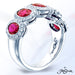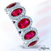 JB STAR RUBY AND DIAMOND PLATINUM BAND HANDCRAFTED WITH 5 PERFECTLY MATCHED OVAL RUBIES, EACH ENCIRCLED WITH MICRO PAVE.