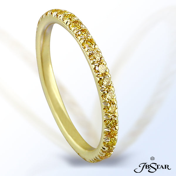 JB STAR NATURAL FANCY YELLOW DIAMOND ETERNITY BAND HANDCRAFTED WITH ROUND FANCY YELLOW DIAMONDS IN 18KY SHARED-PRONG SETTING.
