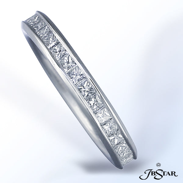 JB STAR PLATINUM DIAMOND ETERNITY BAND WITH 36 PERFECTLY MATCHED PRINCESS DIAMONDS IN A CHANNEL SETTING.