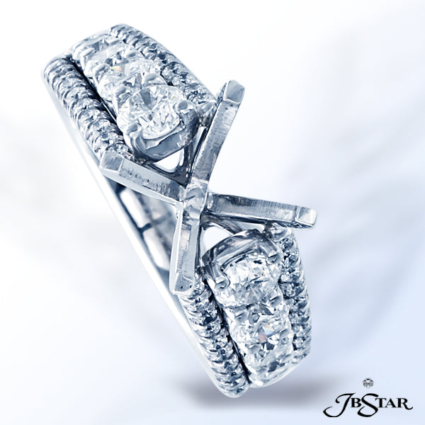JB STAR BEAUTIFUL PLATINUM AND DIAMOND SEMI-MOUNT FEATURING HAND SELECTED ROUND DIAMONDS AND PAVED