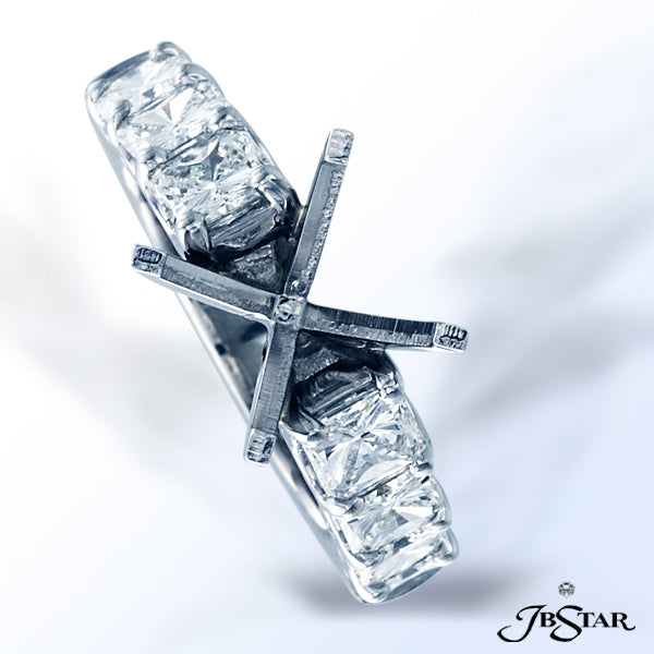 JB STAR EXQUISITE PLATINUM SEMI-MOUNT FEATURING 8 PERFECTLY MATCHED RADIANT DIAMONDS SET WITH SHARED-PRONG SETTING.
