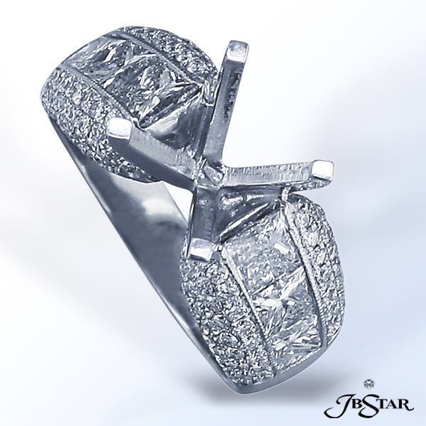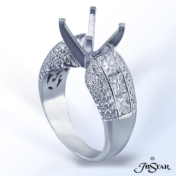 JB STAR PLATINUM DIAMOND SEMI-MOUNT WITH 6 PRINCESS DIAMONDS IN CHANNEL SETTING, EDGED IN MICRO PAVE.