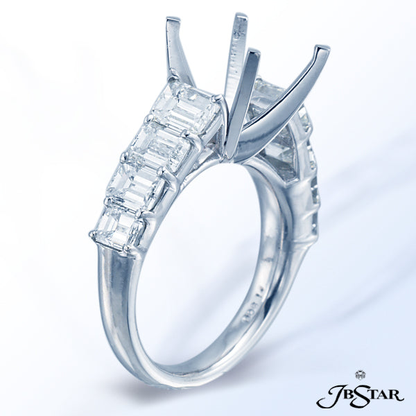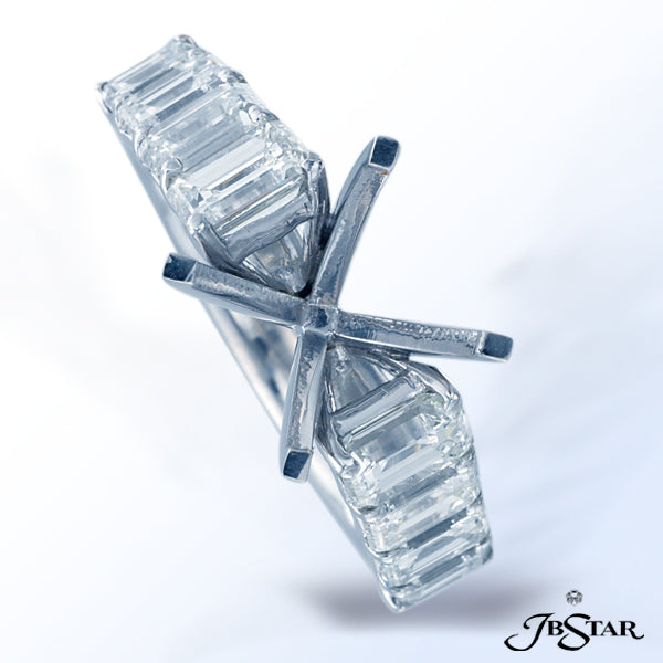 JB STAR PLATINUM DIAMOND SEMI-MOUNT HANDCRAFTED WITH EIGHT GRADUATED, PERFECTLY MATCHED EMERALD-CUT DIAMONDS IN SHARED-PRONG SETTING.