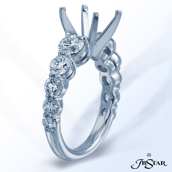 JB STAR PLATINUM DIAMOND SEMI-MOUNT HANDCRAFTED WITH 10 PERFECTLY MATCHED GRADUATED ROUND DIAMONDS IN A SHARED-PRONG SETTING.