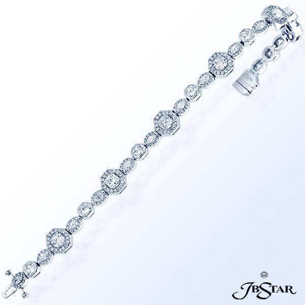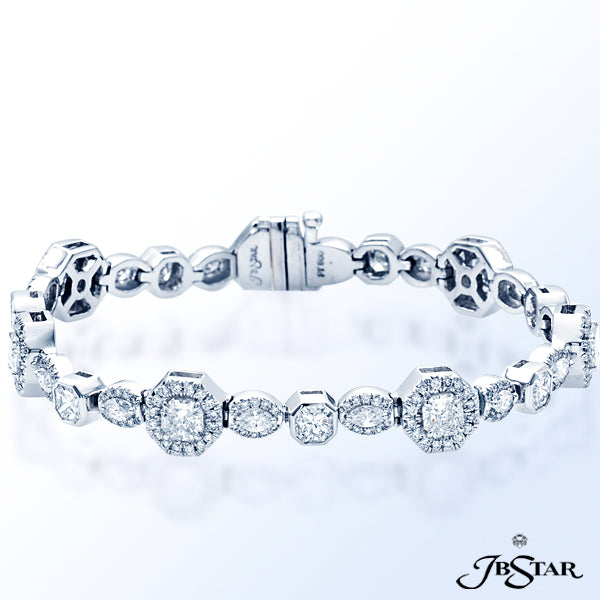 JB STAR PLATINUM BRACELET FEATURING MARQUISE AND SQUARE-EMERALD DIAMONDS EXQUISITELY LINKED TOGETHER WITH PAVE.