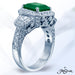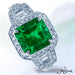JB STAR A GLOWING 3.45 CT. EMERALD CUT EMERALD IS FRAMED BY SPARKLING .67 CT. TW. TRAPEZOID CUT AND 1.04 CT. TW. ROUND DIAMONDS IN THIS VERY UNIQUE EMERALD AND DIAMOND RING.