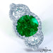 JB STAR EMERALD AND DIAMOND RING FEATURING A STUNNING 2.16 CT ROUND EMERALD EMBRACED BY TWO ROUND DI