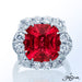 JB STAR STUNNING RED SPINEL AND DIAMOND RING FEATURING A 8.45 CT CUSHION-CUT RED SPINEL ENCIRCLED WI