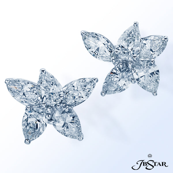 JB STAR PLATINUM DIAMOND EARRINGS UNIQUELY DESIGNED USING 10 MARQUISE DIAMONDS.