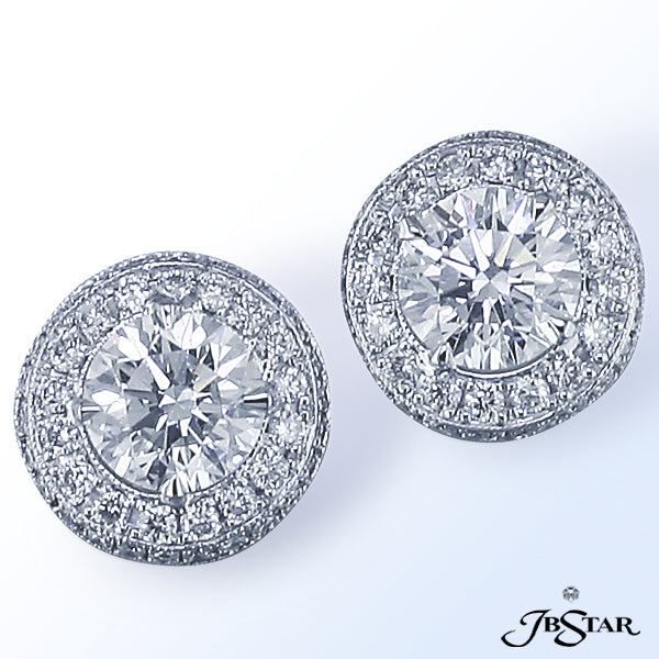 JB STAR PLATINUM DIAMOND EARRINGSCENTER: ROUND DIAMOND 1.53 CT. TW. H SI1 GIADIAMONDS: 0.50 CT.
