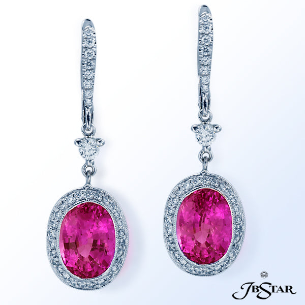 JB STAR PLATINUM PINK SAPPHIRE, & DIAMOND EARRINGSCENTER: PINK SAPPHIRE OVAL 6.88 CT. TW.DIAMOND