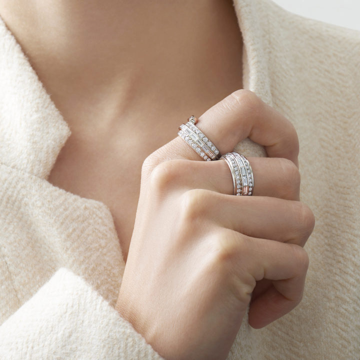 ROUND BRILLIANT CUT AND BAGUETTE DIAMONDS HIGHLIGHT THE MODERN LINES OF OUR ART DECO-INSPIRED CASCADE COLLECTION. THIS SPIRAL RING ALTERNATES THE TWO CUTS, WRAPPING THE FINGER IN A DYNAMIC PLAY OF LIGHT. THE GLEAMING 18K WHITE GOLD SETTING IS DESIGNED TO BE SMOOTH AND COMFORTABLE TO WEAR FROM DAY TO NIGHT.