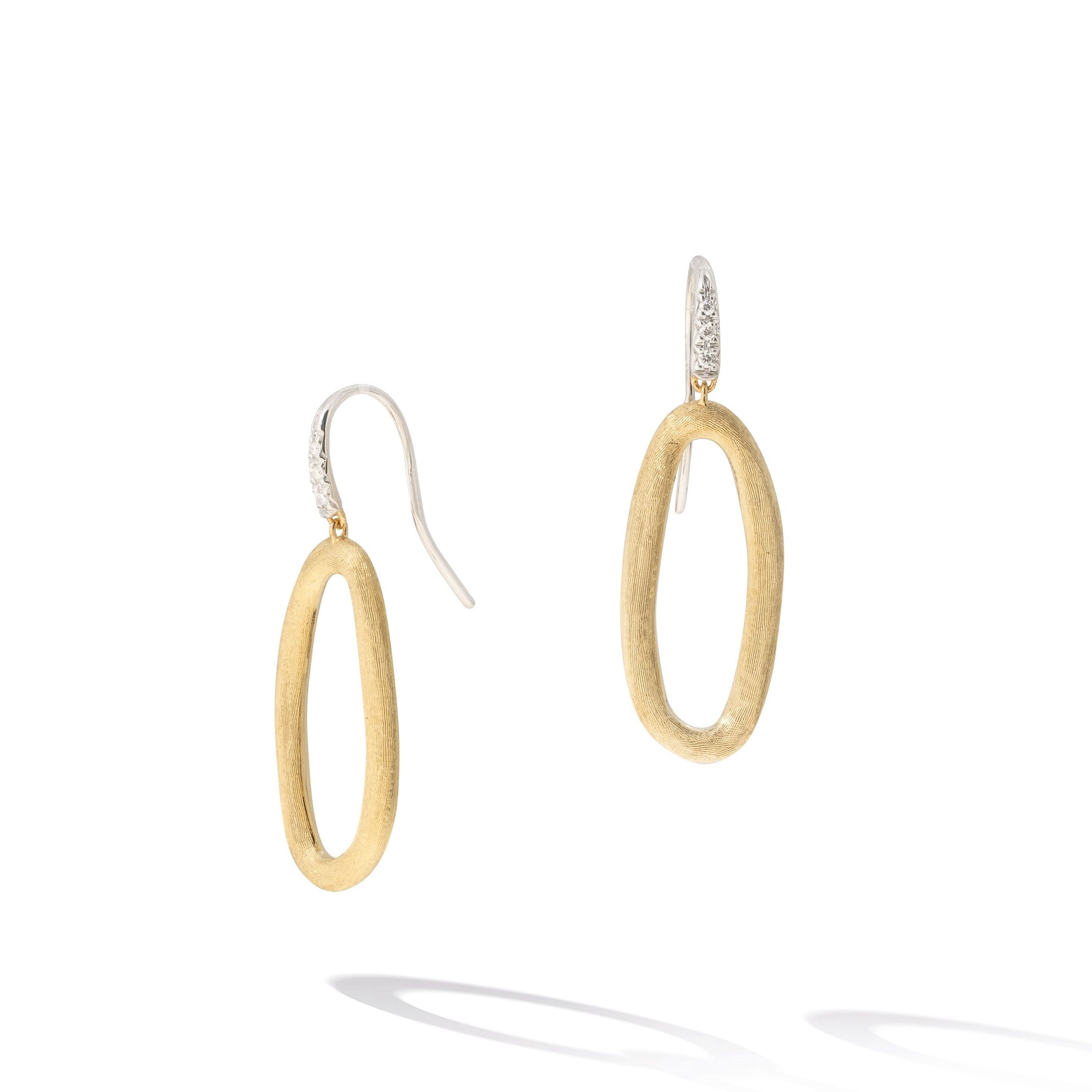 Jaipur Link Collection 18K Yellow & White Gold Oval Link Diamond Hook Earrings