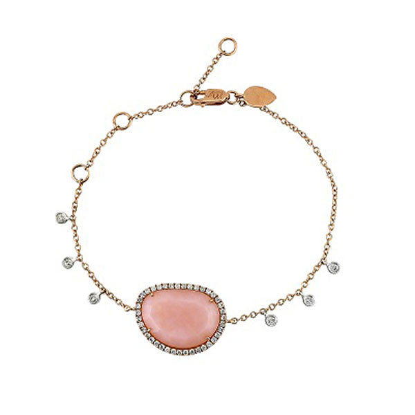 Meira T 14k Rose Gold Pink Opal Diamond Bracelet with Diamond Bezel Accents