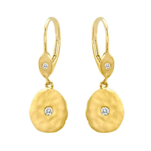 Meira T 14k Hammered Yellow Gold Pave Diamond Earrings