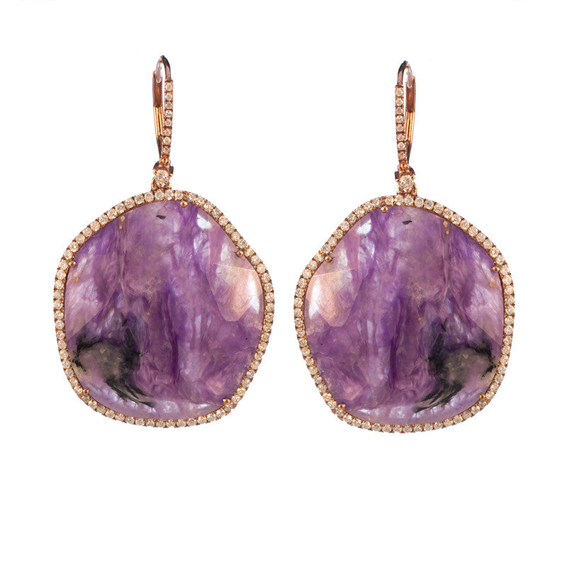 Meira T 14k Charoite and Rose Gold Diamond Earrings