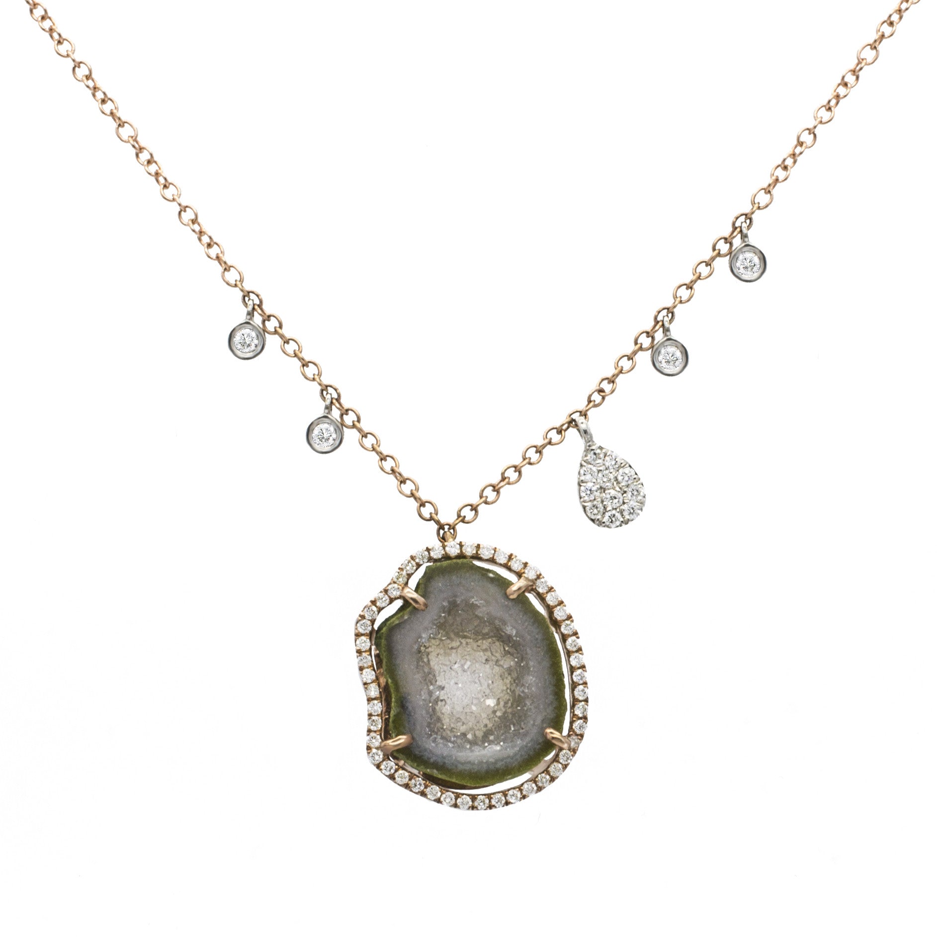 Meira T 14k Geode Diamond Necklace with Off-Centered Charms
