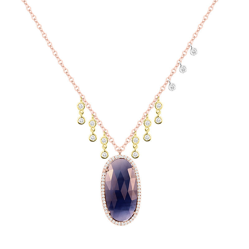 Meira T 14k Blue Sapphire Necklace with Yellow Gold and Diamond Bezels