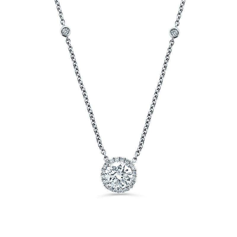 PRIVE' 18K WHITE GOLD 1.01CT BEZEL SET PENDANT WITH 0.17CT ACCENTING DIAMONDS