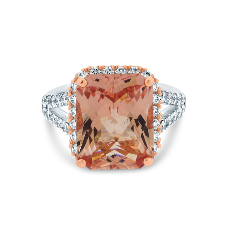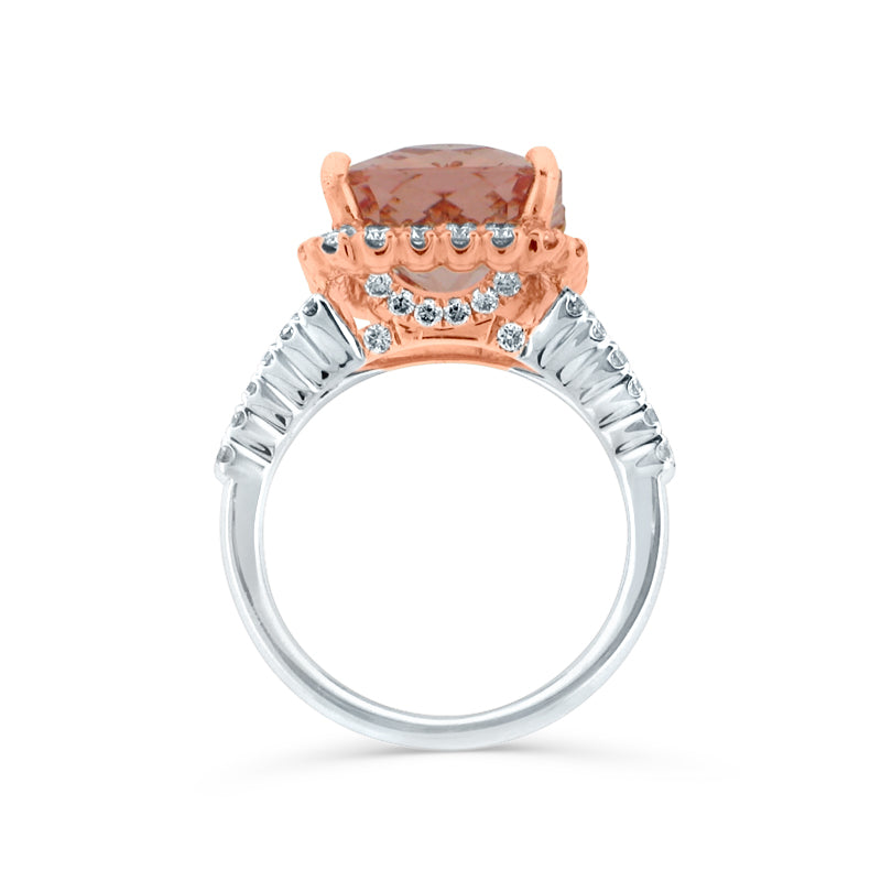 PRIVE'18K WHITE & ROSE GOLD, 6.90CT MORGANITE RING WITH DIAMOND ACCENTING