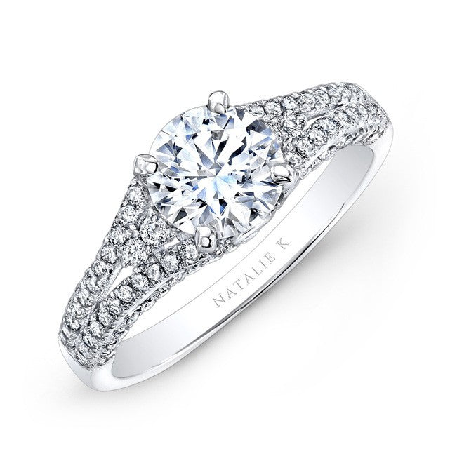 Natalie K 18k White Gold Thick Pave Halo Diamond Engagement Ring (center stone sold separately)