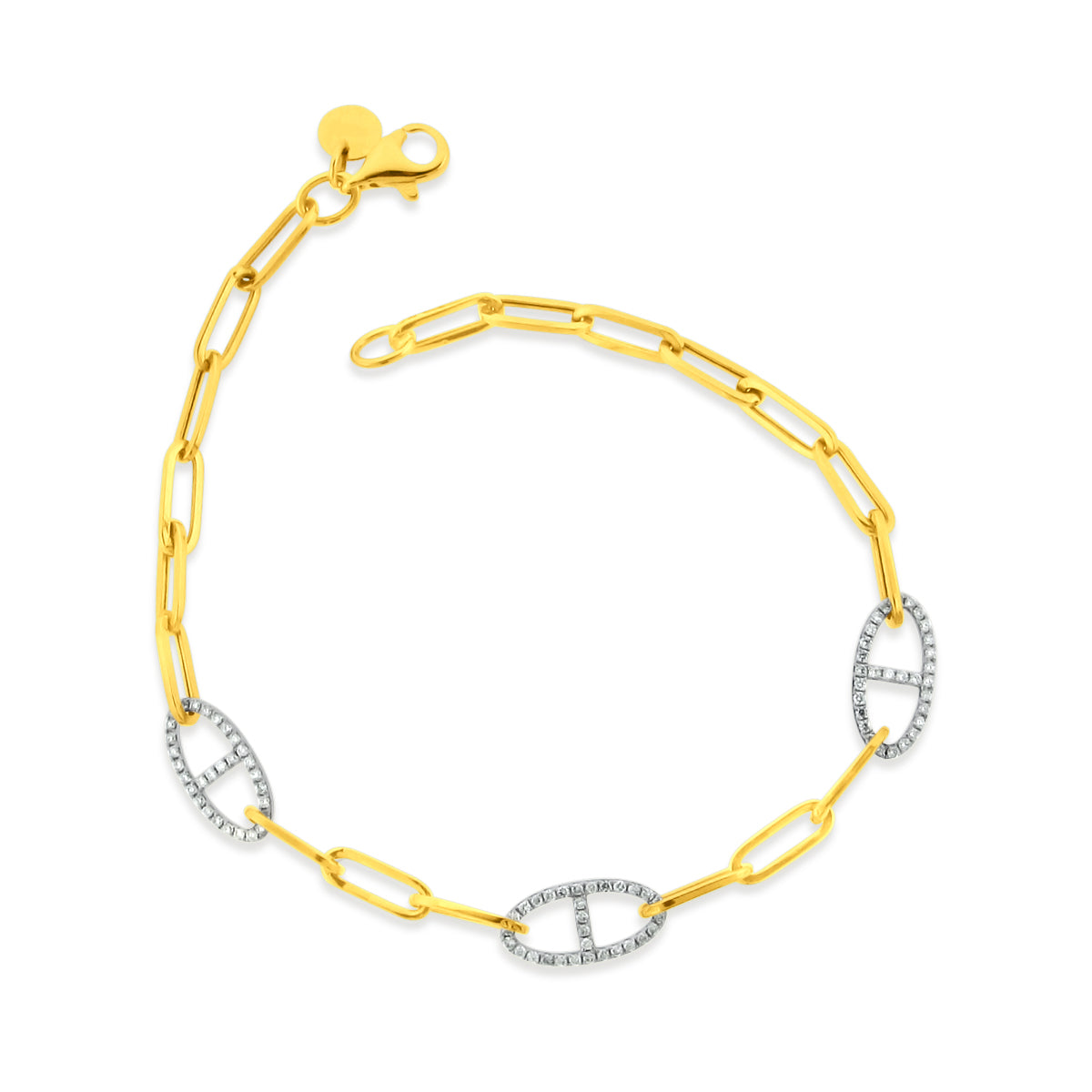 18K TWO TONE DIAMOND LINK PAPERCLIP BRACELET .31CT
