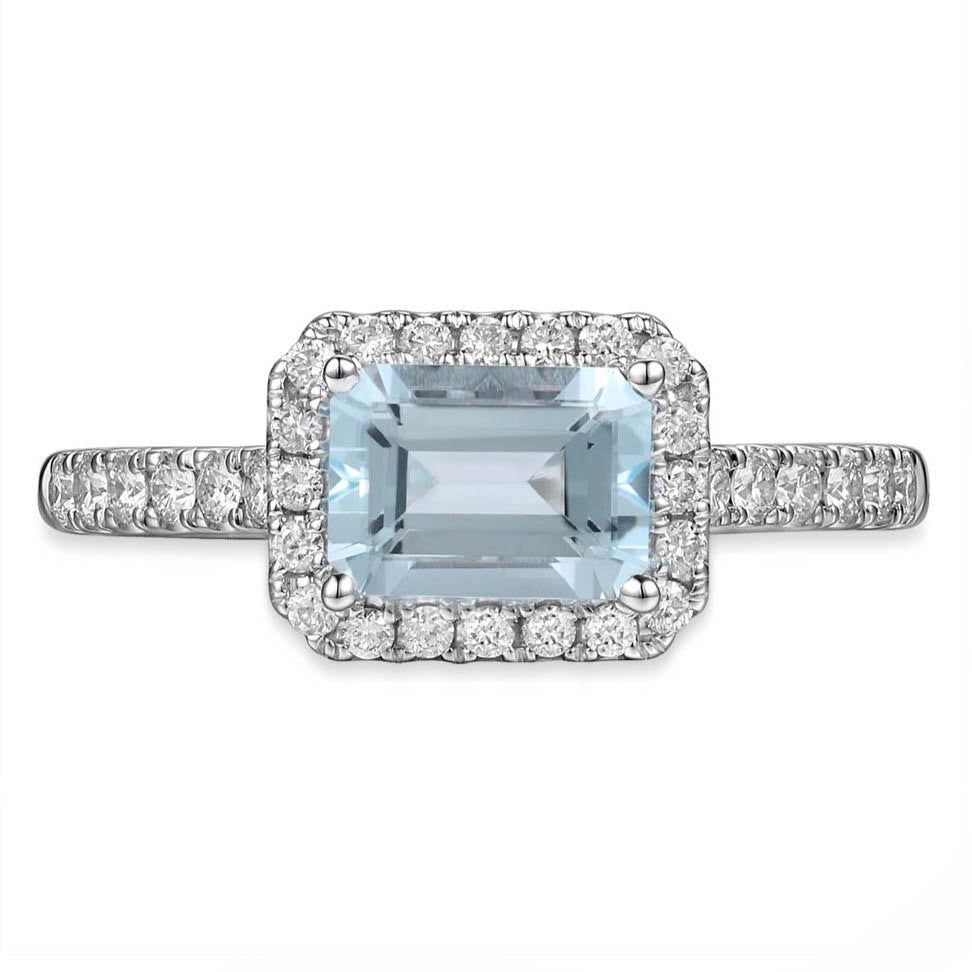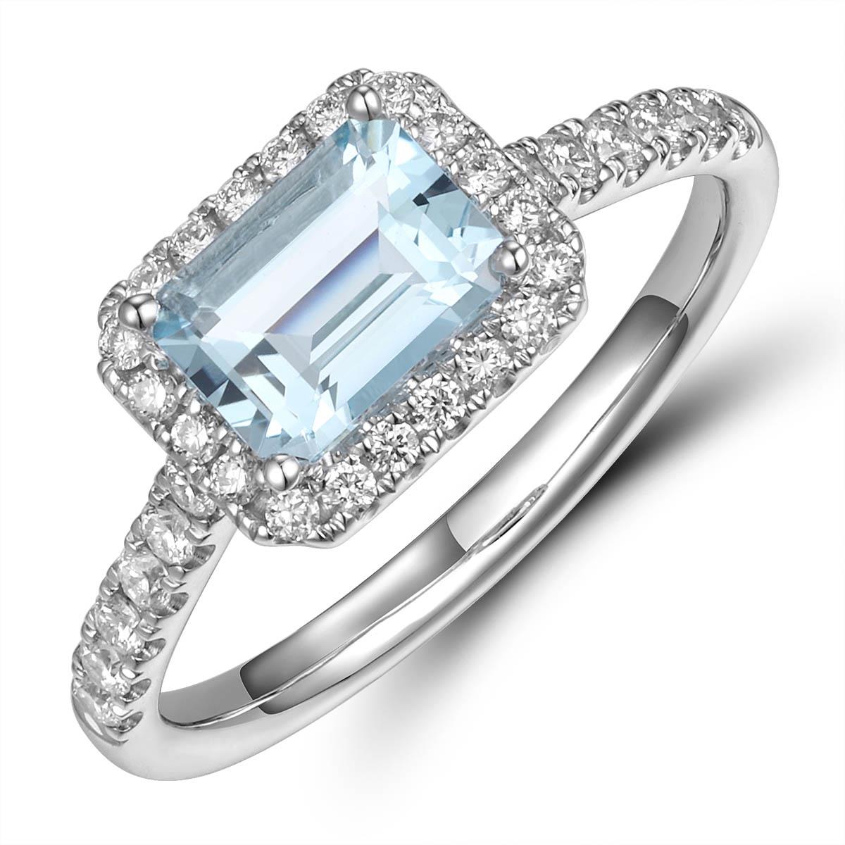 PRIVE' 18K WHITE GOLD AQUAMARINE AND DIAMOND RING